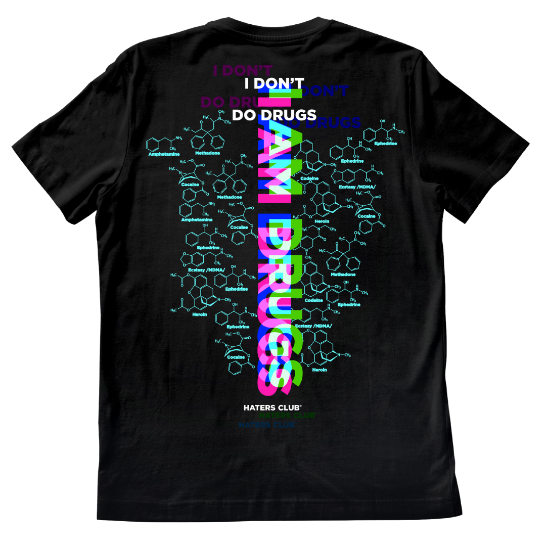 - “I AM DRUGS” Print with Glitch Effect on the Back